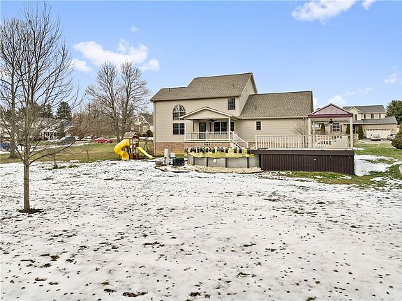 Step into this beautifully crafted, professional-grade home situated on a spacious lot in a fantastic location. Enjoy a variety of great features, including granite countertops, a new roof (2023), air conditioning (2017), furnace (2020), underground animal fencing and more. Upon entering, your attention will immediately be drawn to the two-story stone gas fireplace and the expansive living room with its soaring two-story ceiling. The large kitchen, complete with a full appliance package, is ready for you to enjoy. Unwind in the oversized family room, finished with Owens Corning sound-resistant insulation in 2010. Take a dip in the heated pool (2016) or relax on the Trex deck (2021) while appreciating the serene country setting.