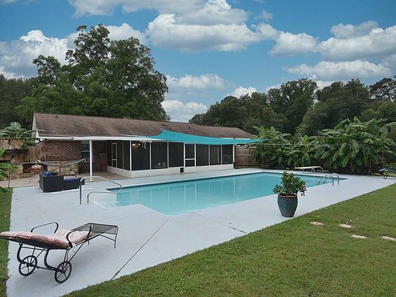 ~ POOL PARTY TIME IN LEE COUNTY ~ IN-GROUND POOL ~ WIRED WORKSHOP WITH 2 ROLL UP DOORS ~ FLAGSTONE OUTDOOR FIREPLACE & PATIO ~ Amazing Lee County Home tucked away down a small cul-de-sac street with amenities galore! This all brick, split plan, 3 bedroom 2 bath home has 1437 sqft, sits on .50 acre lot and a totally open floor plan! Walk in and experience LOVE AT FIRST SIGHT! Huge great room complete with vaulted ceilings, hardwood floors and brick fireplace! Wonderful Kitchen that features GRANITE counter tops, tile back splash, lots of cabinet space, black appliances, tile floors, pantry, window over the sink and spacious dining area overlooking the great room! The primary Suite has a walk in closet and private bathroom! The two additional bedrooms are spacious and have ample closet space! OUTSIDE IS AN ABSOLUTE OASIS ~ In Ground Pool with lots of lounging space around it! Super Screened In Porch! Awesome Flagstone Outdoor Fireplace with a flagstone wood holder and built in place for your grill to create your own outdoor kitchen! Fruit trees in the yard - apple, pear, peach, muscadine vines and lime! Wired workshop with 2 roll up doors! An additional storage building! Fenced yard, double carport and plush landscaping! Enjoy the outdoors in the summer and the winter with this set up! Excellent location close to the by-pass and Leesburg schools!