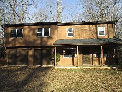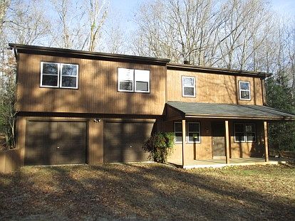 Mountain Cabin get away or primary residence with cabin themed inside with large trusses and winding stairs all put together piece by piece...this home is great for either. This home is at the foot of the mountain of Table Rock and there are limited views with the side of table rock visible late fall and through the winter. Table Rock area has great views, hiking, creeks and lake as well as a state park and vast wildlife. This home is nestled in the woods on a 2.43 acre lot for privacy. Wood inside and out gives this home a rustic, outdoor feel, however, just walk across the street to Aunt Sues for a home cooked meal, Ice cream, bluegrass music or convenience store amenities. Fresh coat of stain on the exterior, new: roof, hvac, carpet,vinyl, front door and other updates make this home move-in ready.