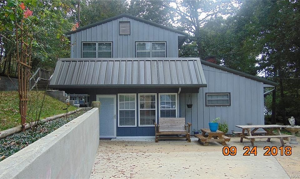 Nice, all metal 2 story, 3 bed 2 bath home with a wraparound porch. On Lay Lake with 100 feet water frontage. A great guest house that is also a 3br, 2 ba of all metal with a covered grilling area and porch. Both home are move in ready. Updated kitchens with corian counter tops and nice cabinets. Lots of storage. Large double boat house with a sun deck on top, a 2 car garage, and a separate garage with side work shop. All this on an acre at an amazing price.