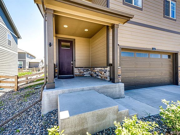 Welcome to 114 Coyote Street, a newly constructed home completed in 2022 and in pristine condition. Why wait for new builds when you can move in right away and enjoy all the finished details! This home features four bedrooms and two full baths upstairs, offering both space for entertaining and personal privacy. Upon entering, you'll immediately notice the seamless open floorplan that connects the living, kitchen, and dining areas, creating a smooth flow throughout the main level. The eat-in kitchen is perfect for hosting guests, with a spacious kitchen island ideal for gatherings. It's equipped with upgraded stainless steel appliances, granite countertops, and a large pantry for added convenience. Located in Bennett, this home allows you to enjoy the charm of small-town living while having easy access to shopping, restaurants, and a local recreation center. It's conveniently close to I-70, DIA, Buckley Space Force Base, and just a quick 30-minute drive to Southlands mall. This property offers the best of both worlds—modern comfort and accessibility in a welcoming community setting.