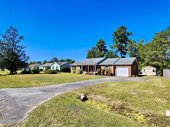 Welcome to this beautifully maintained open-concept home featuring 3 spacious bedrooms and 2 bathrooms. As you enter, you'll find yourself in the inviting living room that flows seamlessly into the dining area and kitchen. To the left, a hallway leads to all three bedrooms, including a generously sized primary bedroom with an ensuite featuring a walk-in shower. The kitchen boasts ample counter space, a multi-level bar top for additional seating, and a pantry. The dining area has a sliding door that opens to a covered deck, perfect for outdoor entertaining. The fenced backyard also includes a shed for extra storage. Conveniently located near MCAS Cherry Point and the stunning Crystal Coast beaches.