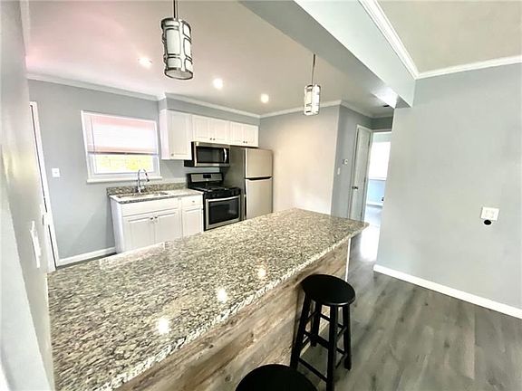 Gorgeous charming tudor cape cod in Crescent Hills having a level entry from the street. Wide open great room effect with beautiful new flooring, sparkling new kitchen with granite counters, new stainless appliances and extra large prep counter for eating. Have your morning brew on the rear deck fabulous for grilling out also. The main level of this home visually brags with a light bright custom tiled bathroom tub/shower combo and adjacent to the bathroom is the master bedroom. The dining room is full sized and the living room will fit a lot of your furniture pieces plus a major sized flat screen tv if you choose. Upper 2nd level has exposed hardwoods and 2 bedrooms separated by a potential closet space. Full basement level with storage galore has another half bathroom and access to the rear yard through the garage.