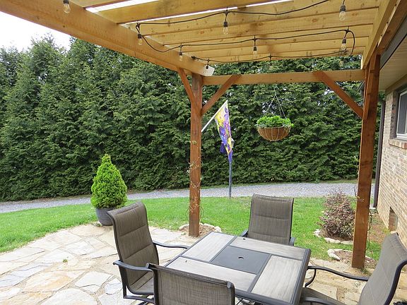Location! & Like New Brick Home w/addition has been renovated & updated + new vinyl windows and doors. It's easy commute to Asheville! The gently rolling to level parklike 1.517 Ac has waterfall feature & is well landscaped! LR w/native stone gas F/P, Kit/Din w/granite counters includes all new appliance w/gas 5 burner range top, granite counters & custom cabinet storage. The M/BR has sliding doors to trex cpvered deck + stone patio.& M/BA has tile shower, soaking tub, double vanity & washer/dryer. Split floor plan for privacy w/2nd M/BR Suite, office & 3rd BR that have drywall & carpet. Basement has partially finished room, workshop area & storage.. Cir. hot water heat + Heat Pump/Air, city water but no city taxes!. Spacious screen porch is perfect place to relax! See to appreciate!