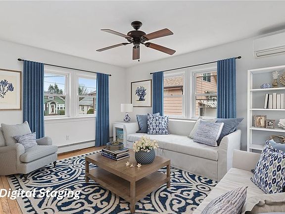 Ready in Riverside! Perfectly located in the popular Riverside neighborhood of East Providence, this efficiently sized 2 bedroom, 1 bath home is perfect for downsizing or entering the homeowner market. 2nd bedroom is well suited for home office or study. Large kitchen with lots of storage. Walk to so much - Squantum Woods, shops, bank, pizza, etc! Commuter's dream with very nearby access to Veteran's Memorial Parkway and Pawtucket Avenue. Fresh paint, natural gas, ductless AC, attached garage and full basement (washer and dryer included in sale)! Adorable front porch and large front yard. Move in ready and available now! (Some images are digitally staged)