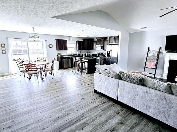 This inviting 3 bed, 2 bath home, boasting a two-car garage and no city taxes, eagerly awaits new owners to embrace its charm and comfort. Upon entering, you're greeted by a spacious living room adorned with a vaulted ceiling, a modern color palette, and a cozy fireplace, creating an inviting ambiance. Seamlessly connected, the dining room and kitchen form a welcoming combo, with dark wood cabinetry and sleek stainless steel appliances in the kitchen. Down the hallway, you'll find the carpeted bedrooms, each equipped with a ceiling fan for added comfort. The main bedroom offers a touch of luxury with its tray ceiling and an attached bath featuring a double vanity and a soothing soaking tub. Stepping outside, the fenced backyard provides privacy and a safe space for outdoor activities. A concrete patio beckons for gatherings or peaceful moments in the fresh air. This home effortlessly combines functionality with style, offering a warm and welcoming haven for its fortunate new owners. Book your showings today!
