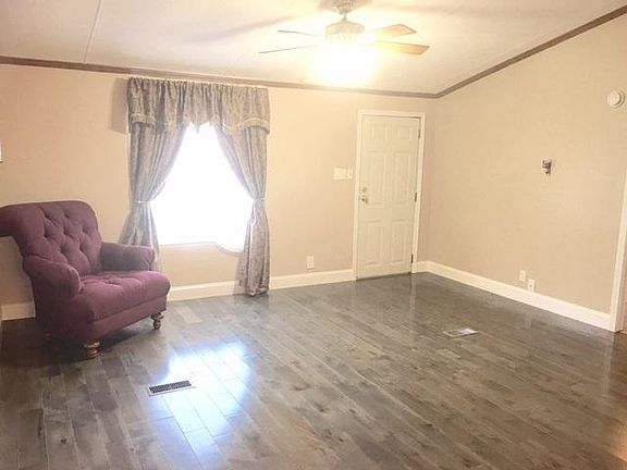 Very well kept 2000 Clayton Doublewide. 3 bedrooms, 2 baths and everything has been updated from roof, hardwood floors, HW heater, central AC, porch, 6-panel interior doors, tiled baths/vanities and kitchen cabinets. This one owner home has an equipped kitchen, great storage building with electric, public water and sewer all on 2.48 acres! Great home to own instead of renting! Clean and modern!