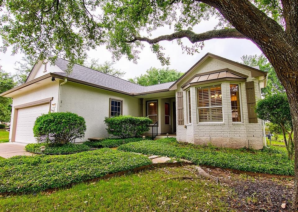 One-story charmer in fabulous Sun City neighborhood! Closer to the main entrance for quicker access to shops, Scott and White hospital, Walgreens, HEB, banks and Randalls. Curb appeal with large native live oak in front and a sweet porch to welcome you home. The open floor plan provides a large living area with gas log fireplace and built-in entertainment center, separate study, and a remodeled kitchen with stunning quartz counters, breakfast nook and top-of-the-line stainless steel appliances. Thoughtful upgrades include high-end wood and tile floors throughout, crown moldings, light fixtures, plantation shutters, and soft neutral paint. The fabulous master suite, complete with a bay window, double vanity bath and custom walk-in closet, is a perfect retreat. Home opens to a private backyard with extended covered patio. Very nice tree-covered established neighborhood with excellent amenities to keep you busy all year.