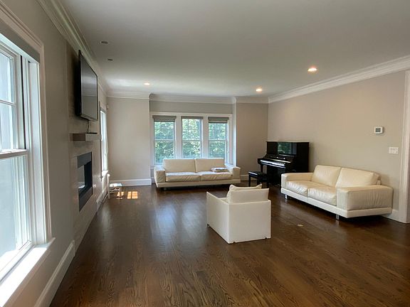 Direct rent from the owner. NO additional fees. This striking 2012-built colonial home has a beautiful lot, residing on a rare 66,000 sq ft parcel off main street in a great neighborhood close to schools and Green line. Easy access to playgrounds and ideal for family with kids. This gorgeous home offers open living spaces, lofty ceilings and tons of windows, along with excellent access to Newton Centre. A 2-story foyer welcomes you to the home and opens the sleek living room with a fireplace. Off the living room is the bright dining room, which opens to a sunroom and the fabulous kitchen with marble counters, an island and high-end appliances. Office room and mudroom is conveniently located at the exit to the garage. On the 2nd level is the master suite, 2 walk-in closets & luxurious master bath, plus 3 more large bedrooms, the 3rd full bath and laundry. The walk-out lower level has a large room ideal as a playroom, media room, bonus room, 4th full bath. This house is a must-see! Renter responsible for water, gas, electric, internet, cable TV, gardening, snow removal. No smoking allowed.