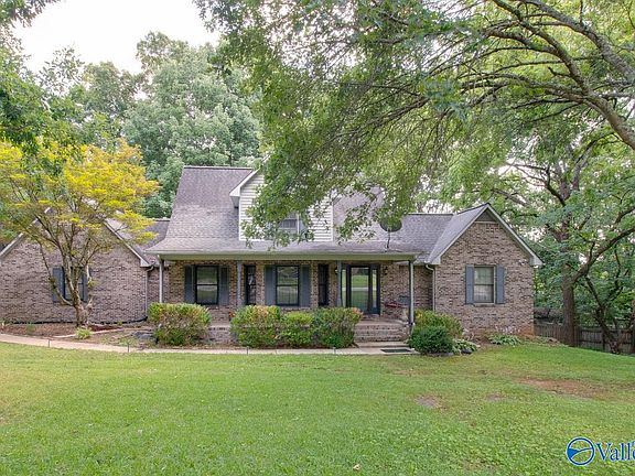 Beautiful custom built, brick basement home with open floor plan on 1 acre lot with trees. Great neighborhood 2 miles from Huntsville City limits. Near Research Park Blvd, Toyota Plant and New Crestwood Urgent Care. Covered front porch, LR features bay window, FP, built in bookcases, open to the DR. FR features wooden beams, high ceilings a wall of windows, open to the kitchen. MBR is on the main level with full bath & walk in closet. Access the deck from the FR to enjoy the private back yd from new deck. Upstairs features 2 more BR & full bath. Daylight Basement has 4th BR, 1/2 bath, RR, another large room plus storm shelter. Oversized Double garage 689 sq ft & large parking pad. No HOA.