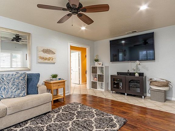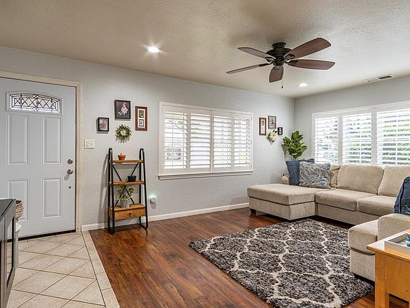 Pride of ownership shows in this beautifully kept home. This 3 bedroom, 1 bath, 2 car garage home is ready for a new family to call it home. The property has hardwood floors in the living room and bedrooms, tile floors in the kitchen, dining room and bathrooms. Beautiful Plantation Shutters throughout the home as well as recessed lighting and ceiling fans. The kitchen has Cherry Wood cabinets and tile countertops. Fresh paint inside and out. The backyard offers a lighted pergola and above ground pool with a deck (lighted steps) with seating area. The Landscape, sprinkler and drip system (timer) have been recently upgraded. Plenty of space for RV/Boat parking. Garage has barn doors leading into the back yard. Close to shopping, restaurants, and highway access.