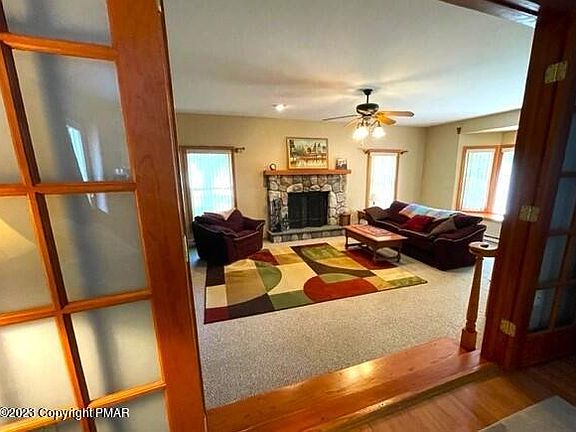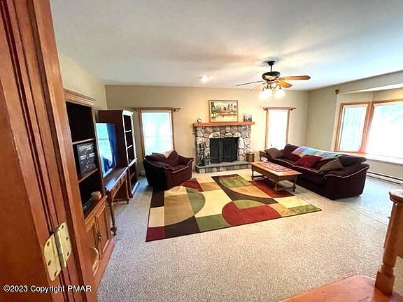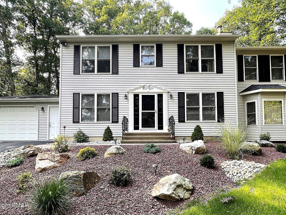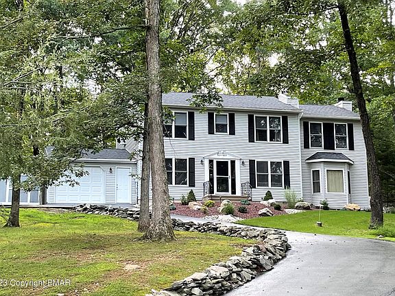 Stroudburg School District! Extended Colonial in excellent location. Fall in love with this beautiful home in a private cul de sac setting. Special features include updated kitchen with stainless steel appliances, granite and brand new cabinets, sunken great room with stone fireplace and bay window and large dining room for family gatherings. Enjoy the ambiance of the 2nd fireplace in the formal living room. The primary bedroom offers a large walk-in closet and private bath. Additional 2 to 4 bedrooms depending on need. (walk-thru). Inside was just professionally painted. Clean garage with storage room, deck, shed and stunning landscape design. A lovely neighborhood for evening strolls. Close to schools, hospitals, shopping, dining and all Pocono attractions. Easy access Rt.80/33.