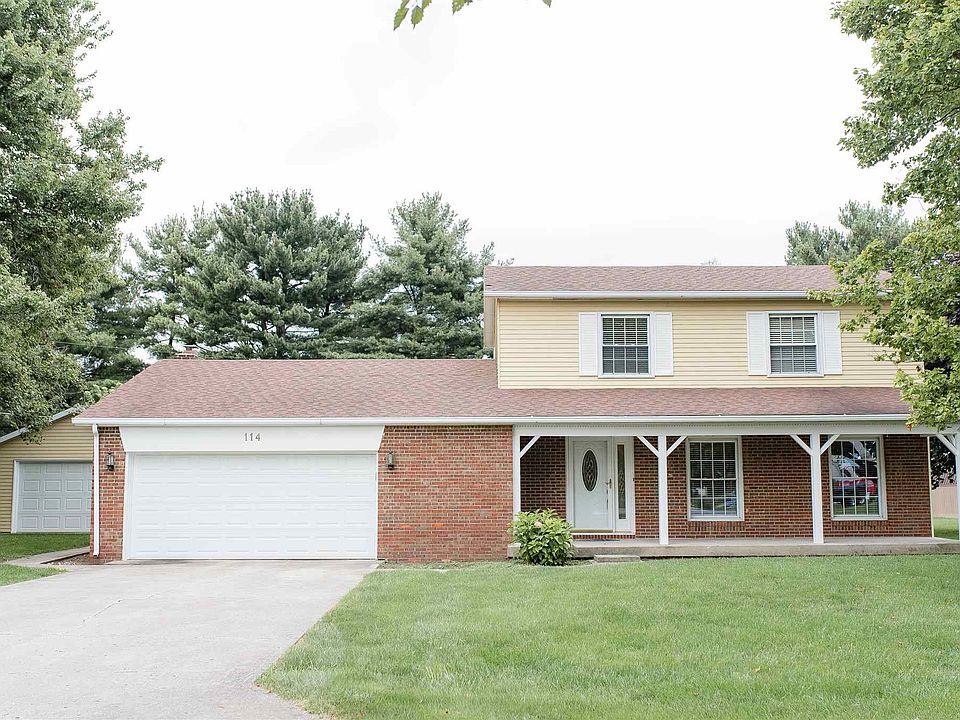 Beautiful and well maintained brick 2 story home with 1944 sq ft, 4 bedrooms, 2 1/2 baths. Home has spacious eat-in kitchen with plenty of cabinets, breakfast bar and a nice view of the large back yard. Family room is adjacent to the kitchen and has a cozy fireplace and access to the patio. Living room, formal dining room, powder room and laundry complete the downstairs. Upstairs you will find a master suite with bath, 3 bedrooms and additional bath. Attached 2 car garage with an additional detached garage. This property is on a quiet street in a very desirable neighborhood, a bit country but still close to the school, park, and shopping!