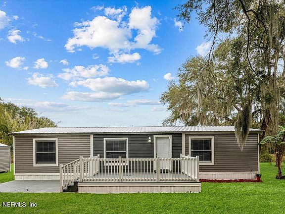 Experience tranquility in this fully renovated 3 BR 2BA DW resting on almost 2 acres. Enjoy the front deck's tranquility on a serene dead-end street. The kitchen showcases brand new SS appliances, soft close cabinets, & Quartz countertops. Every room features new carpet & walk-in closets for added convenience. Fresh waterproof flooring spans throughout the rest of the home, complemented by bathrooms featuring a tiled shower with tub & another with mosaic bottom. With a new metal roof & a recently serviced 5 yr old HVAC unit, year-round comfort is assured. The covered back porch, complete with a sink, is perfect for hosting outdoor events. The heated/cooled Florida room, adaptable as an entertainment area or additional room, adds versatility. A separate well & pump caters to irrigation or agricultural pursuits, combining modern comfort with endless outdoor possibilities. Come check it out today!