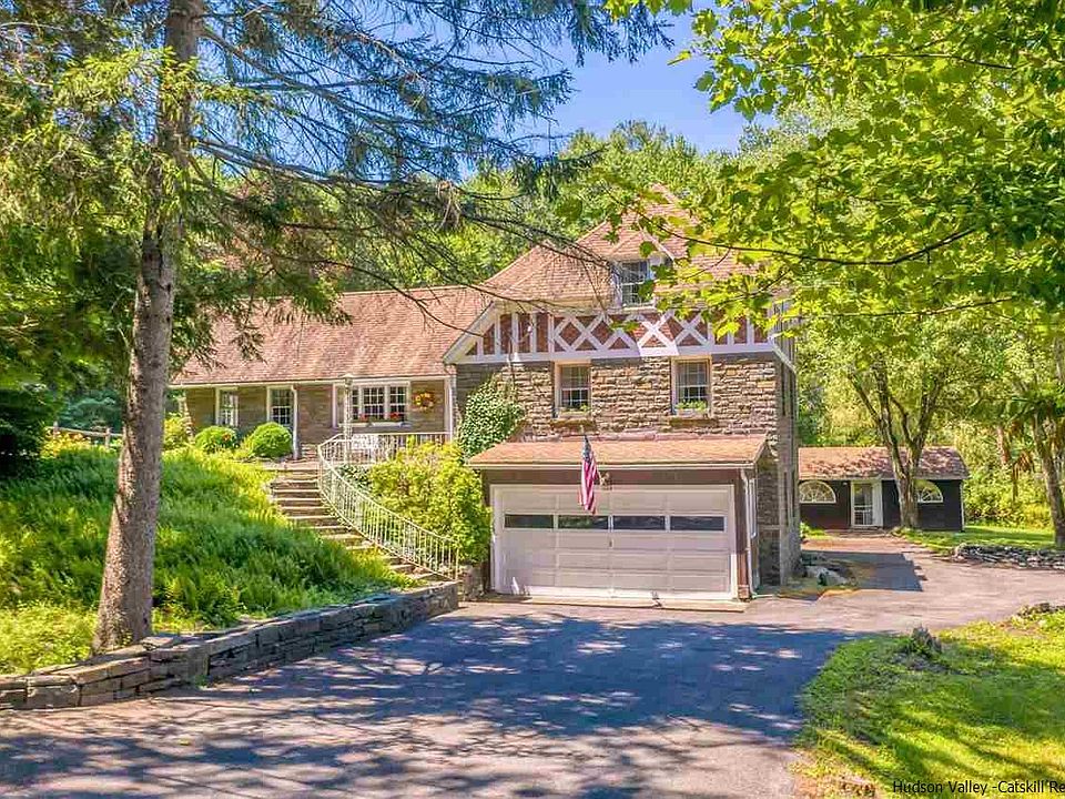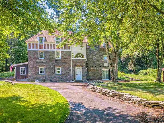 Country living at its best in this 1934 hand cut stone 4 bedroom, 2 bath Tudor offering established floral gardens, stone patios, a separate 12x20 artist studio/rainy day playhouse/schoolroom for the little ones/ or office with electric and plenty of natural light. The 45 acres of land provides your very own nature preserve, a stream and bird sanctuary with wildlife abounding, the barn is not currently in use but is just waiting for new buyers to recreate this space for whatever they want it to be. There is plenty of parking; a circular driveway, 2 car garage and parking on the side of the house where you can enter the house without climbing stairs. Walk in to the eat in kitchen with wood cabinets, the living room has a stone fireplace, built in bookcases, wood flooring and original beamed ceilings, a 8x9 heated reading room office/studio or sewing room with 2 large orange-slice windows, dining room has french doors that lead to patio and hw floors 2 bedrooms on main level hw flooring with walk in closet with lights. The upstairs has the Master Bedroom with native cedar flooring built in bookcases and a stone fireplace, other bedroom on 2nd level also has native cedar flooring with walk in closet. 32x8 walk in attic also has hardwood flooring, electric and lights could be additional room or storage space. You never have to think about who is going to build across the street because the land is part of the 45 acres providing you additional privacy. Yes, there is updating to be done on the inside but you can live there and work from home and leisurely update. This stone construction is quality built and pride of ownership is here! Easy to show. Call to schedule appointment today!