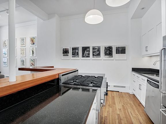 Unit 6B is an exceptional loft apartment in The American Felt Building. This space offers incredibly well-thought design finishes all throughout the apartment. The extremely large windows welcome tons of light allowing the space to feel always warm and cozy, while the 11+foot ceilings provide a great feeling of openness. The living area is spacious and excellent for entertaining with enough room for a separate dining area. The open chef's kitchen creates a friendly feel to the whole space and includes high end finishes, such as a Viking stove and oven, dishwasher, granite and cherry-wood counter-tops. The sleeping area is spacious, features massive closets and is sunbathed by large windows. It is separated by built-in custom-made glass doors that allow a great level of privacy to each separate area. There is a W/D in the unit and an incredibly large amount of closet space and storage throughout.