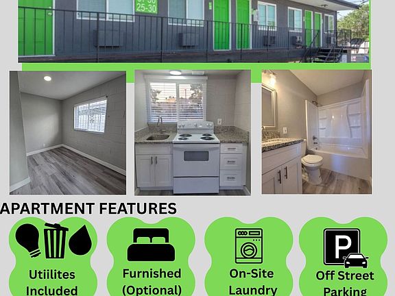 - Exterior features: Availability 24 Hours, Electricity included in rent, FURNISHING OPTION, Flooring: Laminate, Garbage included in rent, Gas included in rent, Heating included in rent, Heating: Electric, Hot water included in rent, Internet not included in rent, One Year Lease, Online Maintenance Portal, Online Rent Payment, Sewage included in rent, Spanish Speaking Staff, View Type: City, Water included in rent