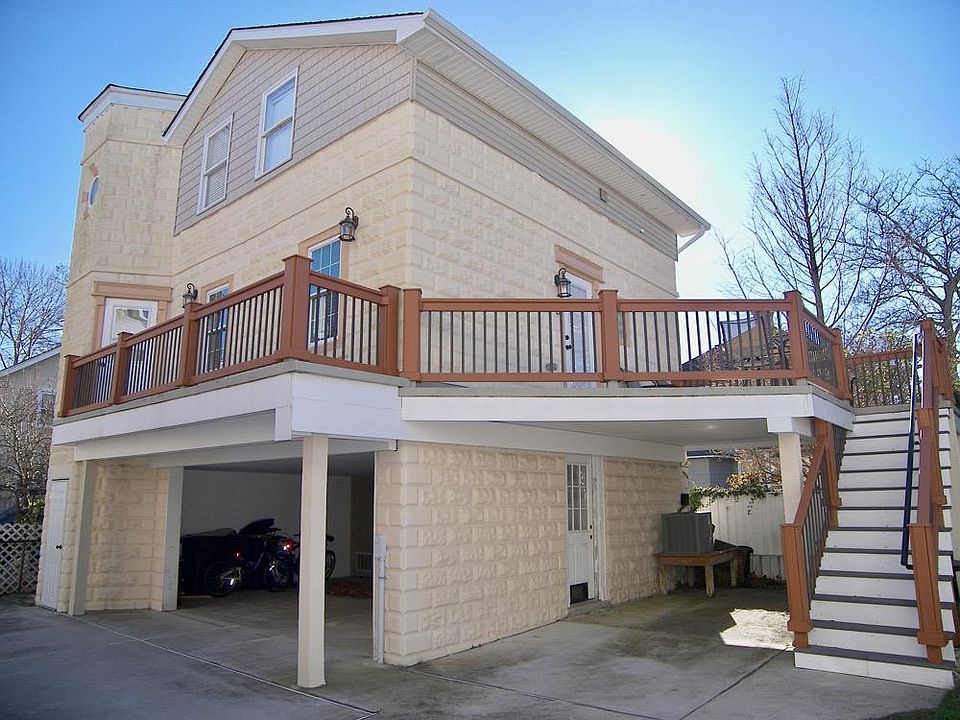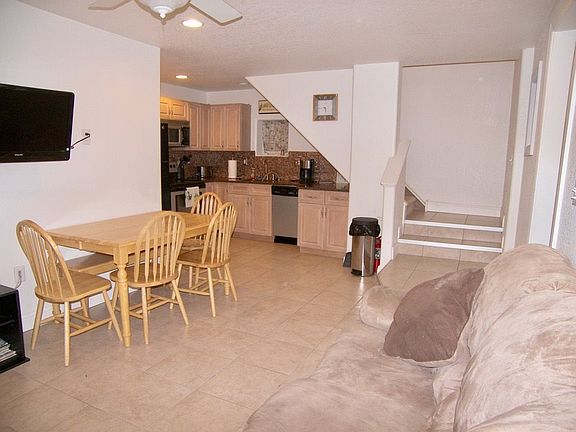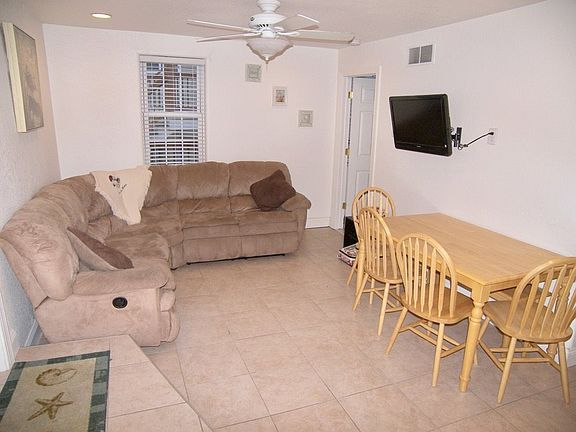 Townhouse condominium in five unit complex, this unit stands alone at the rear of property. Enter from the second floor of a large deck, affording additional outside living space, into the step down living room area, the open floor plan includes a galley style kitchen with granite counter tops and tile flooring. The master bedroom and full bath is on this level with a door leading to a private balcony. The second level includes two bedrooms, full bath and laundry/utility room. Condo fees cover outside insurances, maintenance, common utilities . Complex is pet friendly for owners. Located just three short blocks to the beach and two blocks to the bay and within two blocks of restaurants and shopping. Easily shown, Lockbox access.