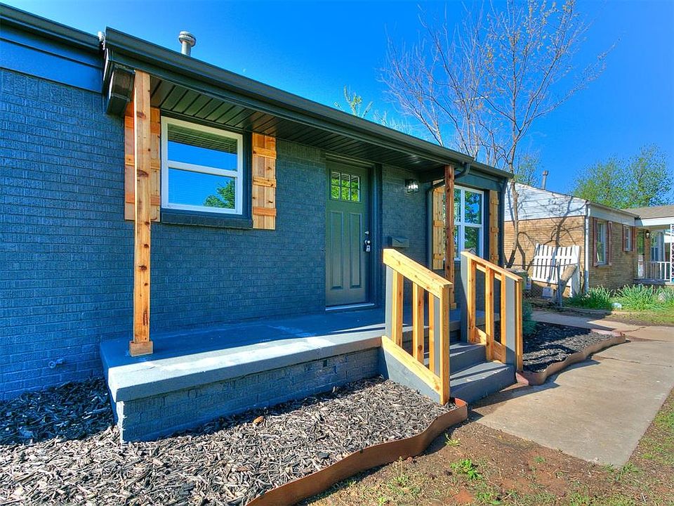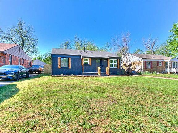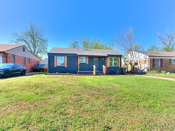 Updated and ready to move into! This 3 bed 2 bath home sits pretty on the block with a fresh black paint job and new windows. Original hardwood floors cover most of the house. The 3rd bedroom is off the back of the house past the kitchen and could be a giant master bedroom or a large living room. Fridge, washer/dyer are included with the sale of the home. All major systems are in good working order from plumbing to electrical and foundation. The one car detached garage is great for storage or parking. Yard is fenced in. Seller is licensed agent in state of Oklahoma #170512