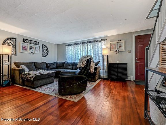 **Charming 2-Bedroom Dunmore Home!**FHA BUYERS ARE WELCOME!Discover this delightful 2-bedroom home, perfectly situated within walking distance to local shops and restaurants. Step inside to find stunning hardwood floors that flow throughout the open-concept first floor. The eat-in kitchen, enhanced by the cherry cabinets, is perfect for casual dining, while the inviting balcony offers great views of the large backyard--ideal for outdoor gatherings and relaxation.Enjoy the convenience of alley access at the back, providing additional privacy and parking options. With a newer furnace and hot water heater, this home combines comfort and efficiency. Don't miss your chance to own this rare gem! Schedule a viewing today and make it yours!