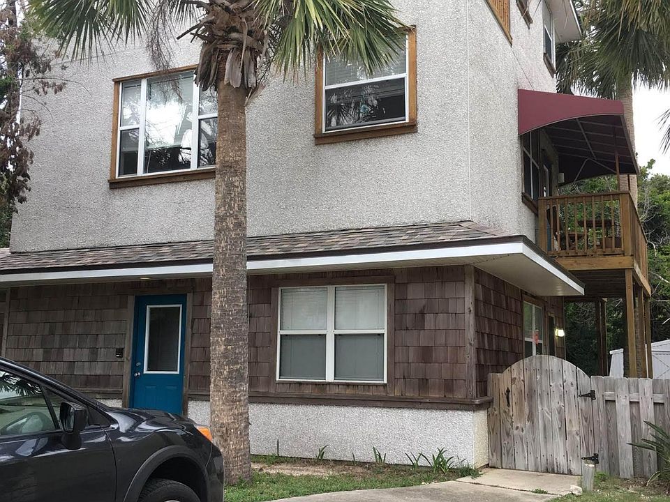 2 blocks to the ocean. 5 blocks to many local bars and restaurants. And about a mile to a shopping center with a grocery store coffee shop restaurants and many other stores. Available November 25th. For rent is the bottom right side of this duplex (no balcony). Furnished. A TV in both the living room and the bedroom. 1 large bedrooms with a very large closet. One large bathroom. A open kitchen/living room/dining area. A large pantry/closet with inside washer and dryer. All recently painted. Very beachy look with ceramic tiled floors throughout. The kitchen and bath has all solid wood cabinets. Includes your own washer and dryer. No smoking inside or outside. Cable and internet ready. Water is included. lawn care is included. Up front is first month rent (prorated if not 1st of month) and 850 security deposit. Requires references and 1 year lease.
