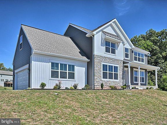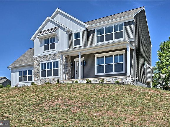 NEW Turnkey 2022-Built Landmark Home in Hawk Valley Estates! Want New Construction without the wait to build!? This never-lived-in Huntington model spared no expense on upgrades! Upon entering the home you're greeted by a bright open layout with an office or sitting room on your right and dining area to the left. Hardwood floors expand the first floor with posh golden light fixtures and recess lights throughout. The kitchen boasts quartz countertops, large island, farm sink and luxurious gold finishes. Off the kitchen is a spacious mud room with stylish floors, pantry, half bath and access to the large 2-car garage. Beyond the kitchen is a cozy living room with stone adorned gas fireplace. Access the elevated Composite deck through the sliding glass doors off the kitchen for a seamless flow of entertaining to the backyard that has the potential for in-ground pool installation. The second floor has a convenient laundry room, 4 bedrooms and 2 full bathrooms. The owner’s suite includes a walk-in closet, private tile bathroom with free-standing shower and double bowl vanity. The daylight basement is completely finished with stone accent wall and half bathroom! Sliding barn doors give entry to a 5th bedroom. This gorgeous home sitting on over a 1/2 acre lot is ready for someone to call, HOME! Schedule a tour today!
