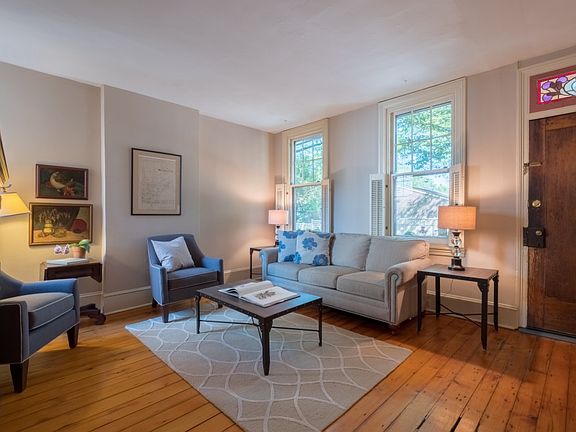 This unique brick rowhome situated on the historic Simon Barnard Row in the North East quadrant of West Chester Borough is a Trifecta: Location, History and Beauty. Professionally re-pointed brick, original fenestrations, custom made stained glass transom window, and colorful window boxes add to the charm of the well maintained exterior. This home extends further back than the others on the row, because of a sunroom addition with vaulted ceiling, powder room and antique coal stove. The sunroom opens out to the meticulously cared for gardens, brick patio, and three tiered fountain! Enjoy relaxing in this private oasis! Inside, you'll appreciate the original pine flooring, preserved historic windows and the feeling of open space, unique to this home, compared to others in the Borough. A lovely and spacious living room is followed by a formal dining room which opens into the kitchen, which is the heart and hearth of the home! Functional and stylish, with gorgeous terra cotta Italian stone tile with mosaic inlay that complement the Italian ceramic tile backsplash and exposed brick. Stainless steel appliances and antiqued white cabinets...get ready to entertain! While preparing for your guests, you'll be able to see and talk to all who have assembled in the adjoining sunroom. You'll never miss a thing! On the second floor, there is a large and lovely master bedroom, a second small bedroom, currently functioning as an office, and the ultimate convenience: laundry area with washer and dryer, and full bathroom with two sinks, Italian tile and excellent water pressure. The third floor has a large bedroom, built-in cabinets, attic access, and a good sized closet. An unfinished basement offers excellent storage possibilities. A brand new natural gas furnace was installed in April, 2017. Come see this unique property in the Borough of West Chester, and prepare to fall in love. Inquire today!