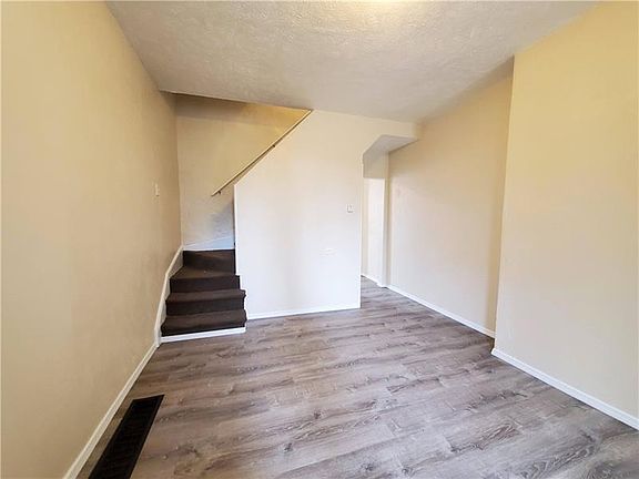 This is a 2 bedroom, 1 bathroom townhouse that comprises 2 floors. On the first floor, there's a living area, dining area, and kitchen, equipped with a microwave, stove/oven, and fridge. The second floor contains both bedrooms and bathroom (through one of the bedrooms). There is a washer & dryer in basement for tenant to use. Nice backyard. Parking is on-street.