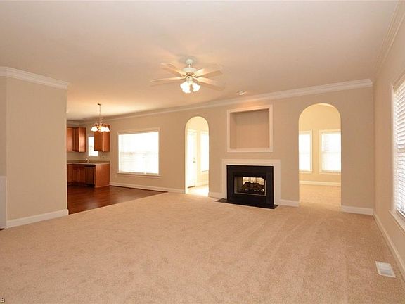 YOU WILL FALL IN LOVE WITH THIS MOVE IN READY HOME - fresh paint throughout, new carpet, new wide plank hardwoods, and new SS appliances. Double-sided gas fireplace from great room to sunroom, 2" blinds, solid surface cntps in kitchen, wall of windows in sunroom, two walk-in closets, double vanity and garden tub in master bedroom/bath, two tiered deck, all lawn maintenance & community swimming pool membership included in HOA's. Shopping, restaurants, & walking trails within minutes of the home.