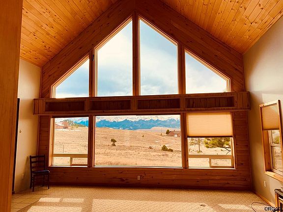 Country living on 13 acres, but only a few minutes to town, this home has a western wall of windows in the great room that bring in the magnificent Sangre de Cristo mountain views you are looking for! It has a great floor plan with the master bedroom and full bath on one end of the home, great room, kitchen and dining in the center, and another two bedrooms, full bath and family room on the south end of the home. The loft area can be another bedroom or an office with a view! Two new Trex decks in front and back add wonderful outdoor living spaces. The home is heated by in-floor radiant heat and a wood stove for backup. The kitchen has Ash cabinets, tile flooring, a gas oven/range and a center island with seating for four. The great room has vaulted ceilings and is open to the dining and kitchen area. The nice sized family room is bright and sunny and offers so many possibilities.