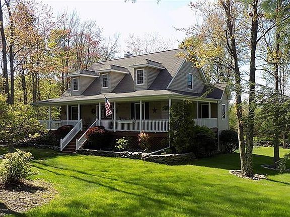 Gorgeous, Immaculate Cape Cod w excellent Year Round Views situated in a very private, small subdivision! This spacious 3, 300 sq ft home sits on 1.11 Private Acres in an area between Lake Wallenpaupack and Mt. Pocono! Features a totally remodeled Kitchen (2016) w granite tops and Propane stove top w venting; Formal Dining Room; Master Suite (1st Floor); Laundry (1st Floor); Brick propane FP in LR; 3br's, 3 baths; Finished walk-out Basement w Bar and Game Room ; Workshop and Utility Room; Den Study can be converted into a 4th BR; plenty of Closet Space! New Shed for Yard Storage. Wrap around Front Covered Porch. Prop backs 2 very large properties w one being a tree farm. This Dream Home is set on a Fully Landscaped 1.11 Acre in Greene Twp Pike County Low taxes.Seller says, bring an offer!