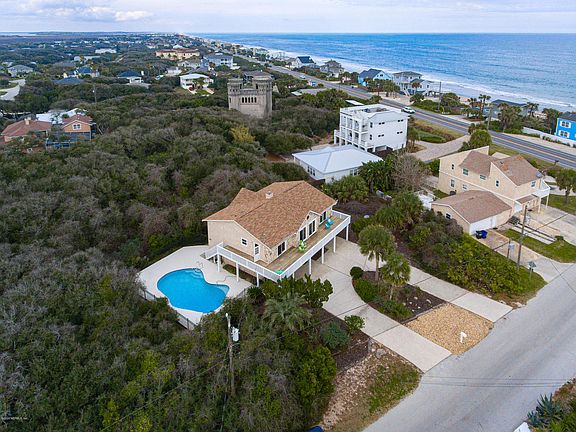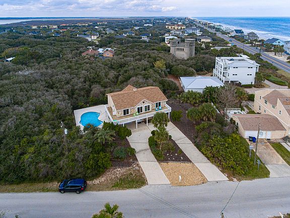 This beautiful beach home is a treasure! Breathtaking unobstructed views from the wraparound decks and perfectly situated on 3 high dune lots! Steps from the beach on the County-maintained beach walk! Enormous sparkling blue pool surrounded by oaks along w/outside shower! Spacious 4 Car garage w/plumbing and electric ready for additional square footage. This 3BR/2BA home was tastefully redone in 2015 including roof, plumbing, kitchen, impact windows/doors, floors, doors, fixtures, baths, HardiePlank siding and beautiful decking! The perfect home for you or a vacation rental for everyone else! Too wonderful to miss!