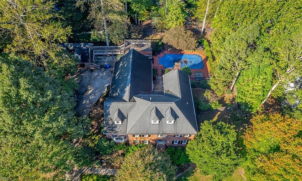 Impressive residence spanning just at 5,000 sq ft of comfortable living and entertaining. The two-story foyer & double staircase are sure to make a grand first impression. The primary level boasts a formal living & dining room with hardwood floors throughout. Gorgeous chef's kitchen with custom cabinetry, island with gas cooktop, KitchenAid appliances and butlers pantry. Through the sunroom the spacious den features a fireplace & wet bar. The main level primary suite has a spa-like bathroom & spacious walk-in closet. Upstairs you are welcomed by a sitting area and 4 large bedrooms that share 2 jack n jill baths. French doors off the huge bonus room, complete with built-in shelving, provide access to the upper deck & unfinished space above the detached 2 car garage plus views of the private grounds below. The in ground pool with lots of seating areas and courtyard creates endless opportunities for outdoor living space. Dedicated workshop space located in attached 2 car garage.