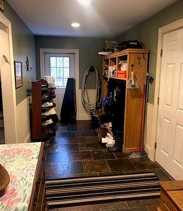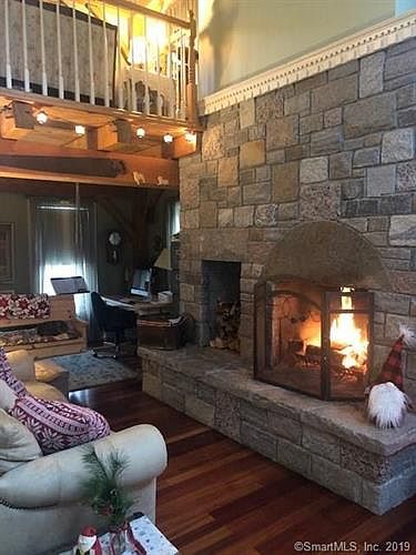 Stately Colonial set back off country road with very ornate stonework on exterior . Gorgeous Kitchen Dining area leading to Livingroom with cathedral ceilings and massive stone fireplace for those cold winter nights. 4 Bedrooms 2.5 Baths including Master Suite with jacuzzi tub walk in shower. Over 2700 sq ft enclosed porch mudroom and 3 car attached garage. This is a must see !