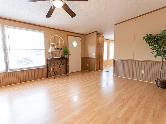 What a Bargain! You can't beat what a GEM you're going to find in this 3 bedroom, 2 bath mobile home in New Moon Subdivision! This home has nice laminate flooring throughout and a large open living area with fireplace. The kitchen has tons of cabinetry, large breakfast bar, bright breakfast area updated appliances. The large laundry area is conveniently located off the kitchen and also has access to the outside driveway. The large master bedroom has a great master en-suite that has a large corner garden tub, separate shower and master vanity. The guest bedrooms are a great size and have generous closet space. The hall bathroom has a great tub/shower combo and tons of storage. This home is located at the end of the street, so privacy is not an issue. There is a great double-parking pad and large yard to service this wonderful home. This a wonderful opportunity to own a great home for a super price. Call to make an appointment to see this home today!!