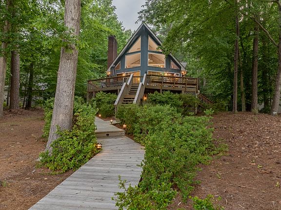 Beautifully Maintained Lakefront Home in Premier Subdivision. This A-Frame style site built home has large waterside windows to allow for a lot of natural lighting & lake views. Open main level floor plan with living room w/ fireplace, dining & kitchen for nice family gatherings. Main level BR, BA, Master Bedroom & Master Bathroom. Upper level has 2BR, BA. Small landing area above living room. Direct access to lakeside deck via sliders from LR. Lower level patio area with outdoor shower and access to unfinished basement that can be used for storage or finish it off for another entertainment area or a workshop. Walkways to the bulkheaded shoreline & sandy beach. Lots of space at double boathouse with covered area for lakeside dining or relaxing. Beautiful wide cove views & lots of LKG fun await. Well maintained & ready to move-in ready condition! Come see!