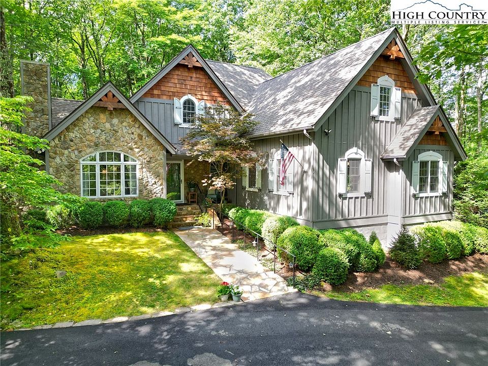 This enchanting cottage is nestled within Wonderland Woods and epitomizes the timeless allure of Blowing Rock vintage residences. Thoughtfully renovated, its 3 bedrooms offer a perfect blend of modern comfort and historic charm. Stone patios beckon outdoor living, while inside, unique architectural details create an inviting ambiance. The heart of this home is its spacious kitchen flowing seamlessly through an arched entrance to a cozy den. Antique glass doors showcase the dining room offering fireside dining. The main floor’s primary bedroom overlooks a lush, rhododendron and fern framed backyard and boasts a luxurious bath and generous closet space. The laundry and access to the 2 car garage complete the one floor living area . Upstairs, 2 additional bedrooms share a bath, an office provides views of the landscaped front yard, ample storage is provided by large closets with shelving . The outdoor living features an expansive stone patio with an outdoor fireplace, an ornamental, portable fence rings the area offering a safe haven for smaller furry friends; the potting shed adds just the right aesthetic touch while providing additional outside storage. This is truly a storybook cottage in a gorgeous setting.