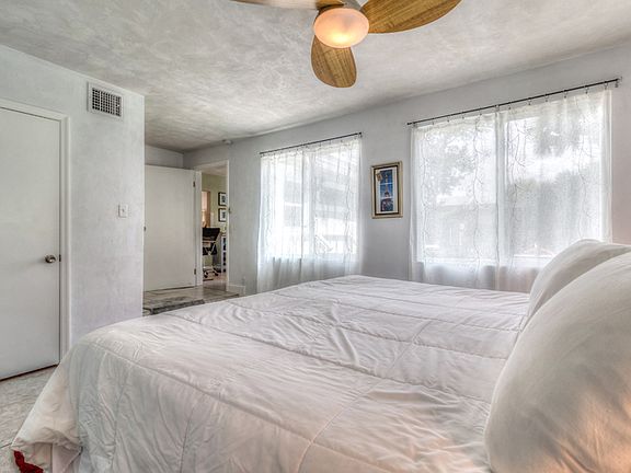 Beautiful Beach Bungalow This adorable vintage, newly renovated 3/2 beach bungalow located in Daytona Beach Shores, sits in a serene and safe area only steps from the World's Most Famous Beach. This vacation get-away sleeps 6 comfortably and includes a 1 car garage. The master suit has a king size bed, walk-in closet and a gorgeous brand new bathroom with a walk-in shower. Bedroom #2 has a queen size bed and a trundle bed in room #3, soaking tub and shower in the guest bathroom. The kitchen has stainless steel appliances and fully stocked for all of your cooking needs. Dining room has seating for 4 plus 2 additional bar stools with plenty of space for your family gatherings. The living room has plenty of space for relaxing while enjoying the entertainment of the 55 inch Flat screen TV. The best part is the open floor plan for the living, dining and kitchen while everyone is in their own space you can still enjoy your family's company. This property has been completely renovated; the perfect place to create memories that will last a life time. Everything included except $150 cap on the electric.
