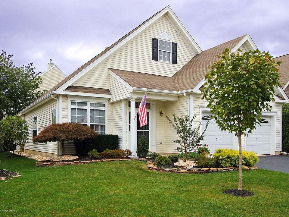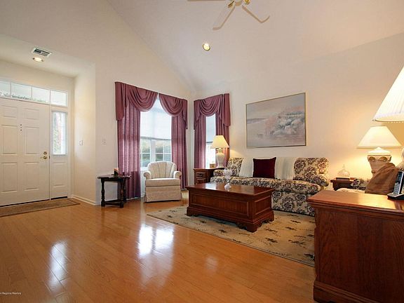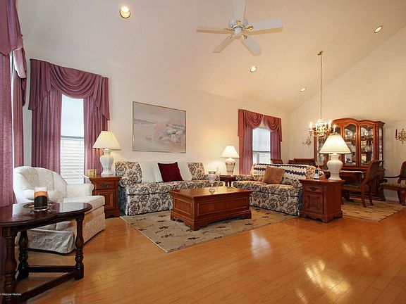 Village Grande at its best!!! This Coventry model has 3 bedrooms and 3 full baths plus an enclosed porch! Great open floor plan boasts living room and dining room combo with vaulted ceiling and hardwood floors. Spacious eat in kitchen with center island, granite countertops and bay window. Cozy family room. Huge master bedroom with tray ceiling, 2 walk in closets and gorgeous master bath. Double sinks, nice sized shower and beautiful tile. Second bedroom nice size. Main bath also redone. Upstairs office/den, bedroom and full bath. Enclosed porch off the kitchen. Porch furniture included. Two car garage! Dont miss this lovely home!!! See attached survey for easements on property.