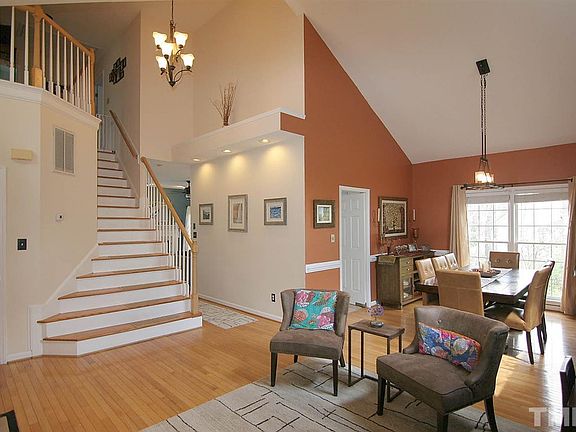 Talk about LOCATION! Live off the Cary Pkwy loop just steps from the YMCA & White Oak Creek Greenway! This home has been lived in and cared for with love. Vaulted ceilings & grand staircase as you enter. Hardwoods entire 1st floor. Wooded privacy & deck for relaxing, great layout for entertaining. Bright kitchen w/ granite counters. Updated lighting throughout. Shower newly refinished. HVAC replaced 2020. Just minutes from airport, Bond Park, Preston, Fresh Market and more! Don't miss this quiet retreat!
