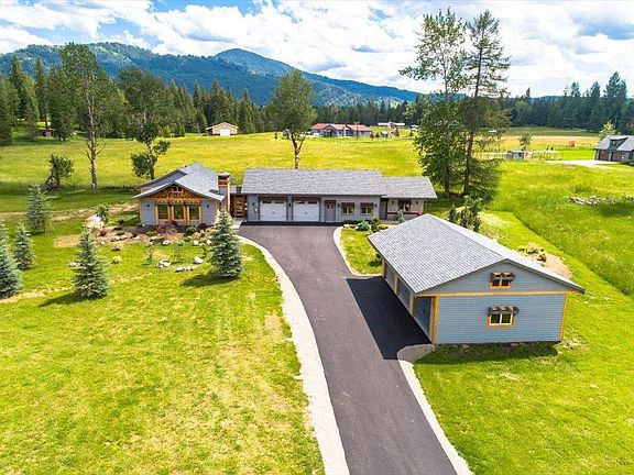 Gorgeous custom craftsman home located on 5 beautiful acres in the desirable Saddle Ridge Estates with paved road access. There is an attached guest home with custom finishes. Some of the features are cedar and knotty Alder trim and crown molding, 9’Ceilings, solid knotty alder doors, Huntwood custom kitchen cabinets, stained Knotty Alder with soft close doors, and lazy susans at each corner, granite countertops, Bosch Refrigerator and Dishwasher, Kitchenaid Duel Fuel and Convection Chef Range, granite fireplace with free standing wood burning stove, and walls of windows offering gorgeous views. Garage is insulated and heated. R Value rated 13.45 There is also a 24 x 38 shop with 3 stalls and 9' ceilings. Guest house: Custom built cabinets with Idaho White Pine and Live Edge Countertops in the kitchen, bathroom and great room. 9’ Ceilings in the great room, 10’.4” in the kitchen, bedroom and bathroom. Trim and Crown Molding: Cedar and Knotty Alder Solid Knotty Alder doors Samsung Appliances