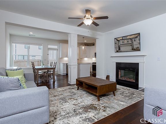 Like brand new and in move-in condition! This immaculate 3 bedroom 2.5 bath townhome is only one year old and comes with a 10-year home warranty. Exterior features include farmhouse style architecture with brick elevation, 2-car garage, rear patio with privacy fence, and maintenance-free living in the Cannon Trace neighborhood. HOA covers all exterior building maintenance! Community amenities include lawn maintenance, community swimming pool, dog park, open green space, and ample guest parking. Interior finishes are well appointed with wood flooring on main level and staircase, stainless steel appliances with gas range, kitchen island and walk-in pantry, tile flooring in kitchen and bathrooms, quartz countertops, electric fireplace in living room, smart home wiring, security system, 2” blinds throughout, vaulted ceilings in bedrooms, flexible loft/den/game room, upstairs laundry room, master bedroom with sitting area, walk-in closet, dual sinks, garden tub and separate tiled shower in master bath, and so much more!