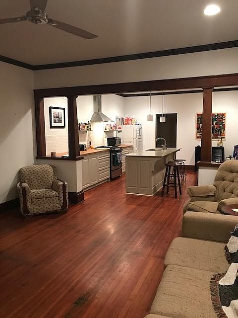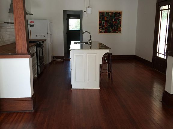 2 bedroom, 2 bath, 2 separate living living areas (1 of which is used as a bedroom), office / sunroom, Large kitchen with custom counter tops and cabinets, large island w/stainless sink, granite top, and dishwasher. Large front porch and stoop.