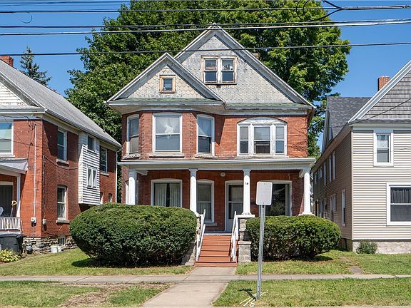Four bedroom, one full bath brick two story. Walk-up attic!!! The furnace and roof are 5 - 7 years old, and this property has lots of character but needs some remodeling. Very nice layout with a large front foyer with a decorative fireplace. Split stairway! Ascend to a landing from the foyer and from the kitchen. Large living room with bay windows. Formal dining room. There are four good size bedrooms on the second floor, one especially large and has a door to the full bath. All of the bedrooms and the roomy hallway have hardwood floors in pretty good condition. There is a small back yard, but there is plenty of room back there.
