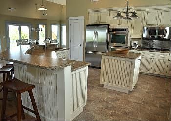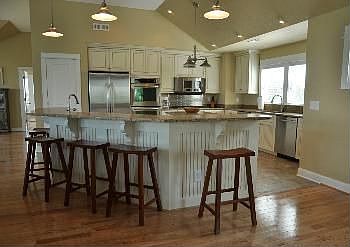 Sunset Bluffs is Oceanside in Duck Village and nestled in a wooded lot at the end of a cul-de-sac. This newly constructed home has many amenities for a memorable vacation. The roof-top deck offers panoramic views of the Outer Banks and large windows provide views of parasailing, sailing and other water activities taking place on the sound nearby. Witness impressive sunrises and sunsets from the decks. The well-appointed kitchen has a gas cooktop and stainless steel appliances for the everyday chef. Plenty of gathering space makes this home a place for entertaining. Multiple TVs and a theatre room with tiered seating set the scene for watching movies and eating popcorn. Special features include an elevator, gas fireplace in the living room, built-in bar in the dining room and center island for extra counter space. A mid-level espresso bar with under counter fridge allows for a quick morning java fix without disturbing the entire house. Sunset Bluffs is professionally decorated with a mix of cottage-style furniture and distressed teak antiques. Relax on the raised tanning deck above the 16’x32’ in-ground private pool. Amenities such as a poolside bar, hot tub, charcoal grill, gameroom with foosball, and tavern style shuffleboard round out this beach vacation venue. Enjoy convenient access to the Duck Waterfront Shops, Duck Deli, Duck's Cottage Coffee Shop & Bookshop, Blue Point Restaurant and Tommy's Market. Bayberry Bluffs is a friendly neighborhood that allows the use of golf carts.
