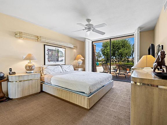 This highly sought after 2/2 unit in Monterey CC, looks East over the stunning golf course and beyond. Soaring ceilings, spacious living and dining area looking out to the inviting terrace. The unit is the perfect year round residence or can be used as an investment property also as a seasonal rental. The units location is close to the main south gate, so easily accessible for friends and family. Ample storage in the unit and in the 2 car garage. The development is guard gated 24fhrs. There are numerous pools and spas throughout the Club also basic cable is included in the HOA.