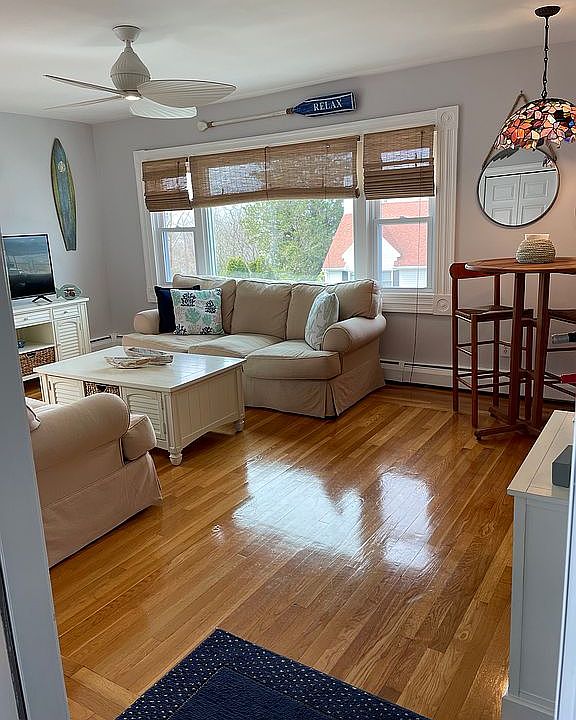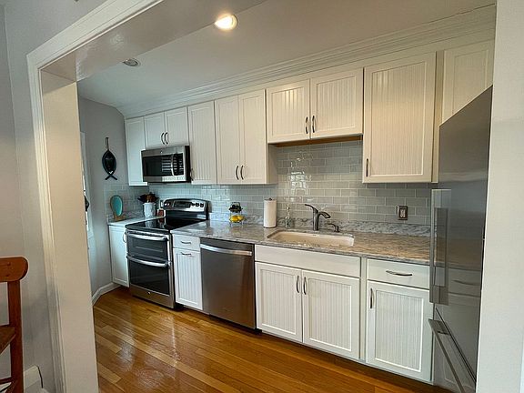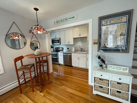 1 year lease. Wake up to ocean views from your bedroom every morning and watch the sunsets over Naragansett Bay with Jamestown in the distance. North end townhouse, condo converted home with spectacular views of Naragansett Bay and the Newport Bridge. Open plan main level with laundry and half bath. Living area leads to new Trex deck built summer of 2021. 2 large bedrooms and main bath on second level. Completely remodeled in 2015. New windows added 2021. Carrera Marble kitchen and main bath countertops. Hardwood floors on main level. In unit laundry. Master bedroom has a massive walk-in closet you will love. Both bathrooms completely remodeled. Parking for three cars. No pets. $2600 mo + utilities. Available July 16. 1 year lease, then month to month or renew lease. Application available from landlord. Utilities not included. No pets. No smoking.