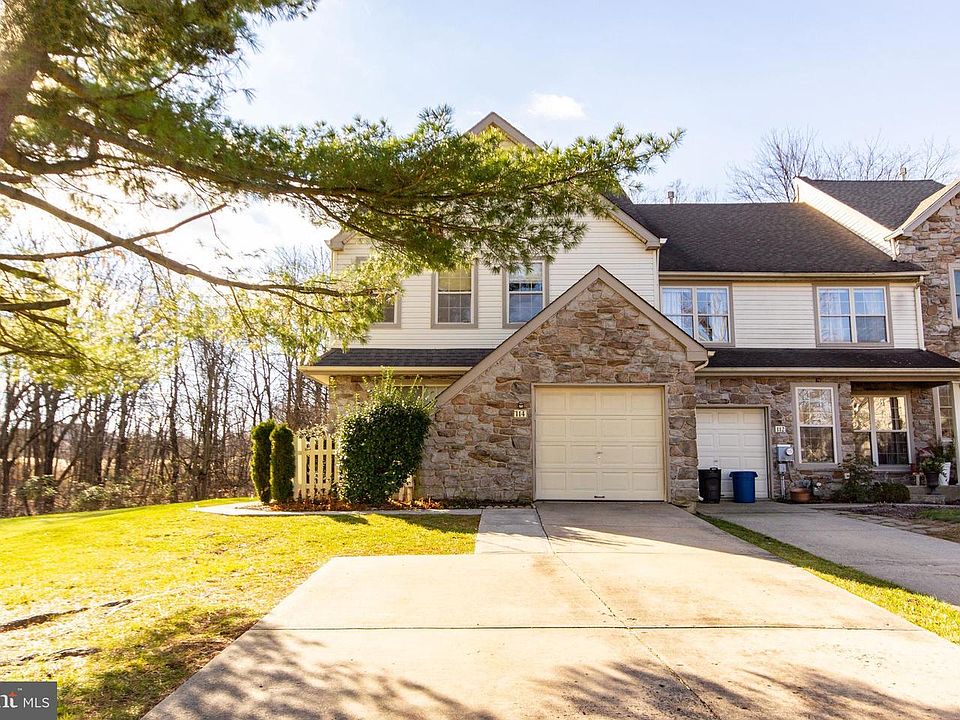 LANDLORD WILL ONLY ACCEPT A MINIMUM OF A TWO-YEAR LEASE.This beautiful, stone-front, end unit townhome, is nicely situated at the end of a cul-de-sac and just steps away from the community playground. The home consists of three bedrooms, two and half bathrooms, finished basement, one car attached garage, with two car parking, mud-laundry room with washer and dryer included and, maintenance free deck with the most spectacular views. The property features hardwood flooring on the entire first level and freshly painted. There is a fully equipped kitchen with stainless steel appliances and gas cooking range plus a pantry and breakfast room. Adjoining the kitchen is the great room with soaring ceilings, wood burning fireplace, flanked by a wall of windows. In addition, you have a formal dining room & living room with adjacent powder room. Finished basement with egress window and plenty of storage. Second floor comprises of primary bedroom with a sitting area, bathroom with double bowl sinks, soaking tub, and stall shower. Two more generous size bedrooms, hall linen closet and full bath complete the upper level. New carpet on the entire second floor. The landlord paid association fee includes Common Area Maintenance, lawn maintenance, snow, and trash removal, playground. Additional community features: sidewalks and adjacent over flow parking; located just a short drive to many amenities, shopping, and locals. Central Bucks School District. Single family home living with the convenience of townhome appeal. Move in TODAY!
