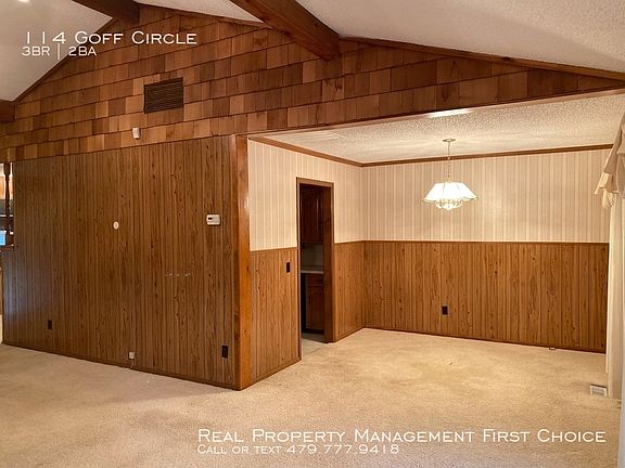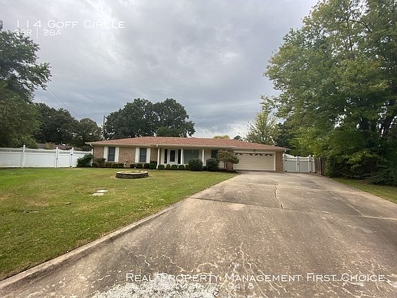 114 Goff Circle in Roland is offered for Rent by Real Property Management First Choice. This home has 3 bedrooms, 2 full bathrooms, and a 2 car garage. It is located on a cul-de-sac, giving it a very large front and backyard. The backyard has a privacy fence, covered patio area, and a storage shed for tenants use. The living room has vaulted ceilings and a "formal dining room" area. The kitchen comes with kitchen appliances and then there is a separate laundry room with washer/dryer hook ups and extra cabinet space for storage. There is also an "eat in" area in the kitchen, making for extra room and there is lots of cabinet space as well. Or you can go to our website at rpmfirstchoice.com. Pets welcome: breed & weight restrictions, plus fees apply. Call our office for more information. Rent: $1000. Deposit: $1000 (including $100 leasing Fee). Application Fee: $35. 2 Car Garage. Covered Back Patio. Fenced In Backyard. Washer & Dryer Hook Ups