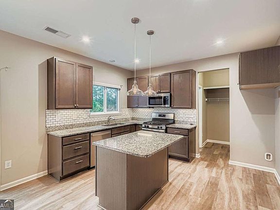 This beautiful home is located just minutes from Waleska Road in Canton, GA, in the welcoming Great Sky community, which offers a pickleball court, playground, pool, and more. With four bedrooms and two and a half bathrooms, this home is full of thoughtful design and inviting spaces. Out back, you'll find a wood balcony that opens directly to the kitchen through glass sliding doors, and a fenced backyard perfect for relaxing or entertaining. Inside, a home office with glass French doors sits across from the formal dining room, offering a quiet and professional space. Towards the back of the main level, the living room flows seamlessly into the kitchen and breakfast area, creating a bright, open gathering space. The kitchen features an island with breakfast bar, a walk-in pantry, and plenty of storage, and the main level laundry room is conveniently located nearby, complete with a shiplap accent wall and folding ledge. A half bath completes the main level. Upstairs, a huge loft space/family room provides a flexible area for relaxing, entertaining, or homework. All four bedrooms and two full bathrooms are also on this level, including the oversized primary ensuite. The primary bath offers dual sinks with beautiful blue cabinetry and gold fixtures, plus a separate tub and shower with sliding door. The secondary bedrooms are all generously sized, and the secondary bathroom has a tub/shower combo. The lower level is unfinished, ready for you to customize and make your own. This home blends practical living, stylish touches, and flexible spaces in a community that truly offers something for everyone. It's a place where comfort, style, and convenience come together to create the perfect place to call home. Discounted rate options and no lender fee future refinancing may be available for qualified buyers of this home.